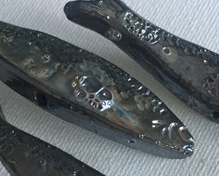 Heureusement, pour une fois j’ai été prudente : je n’ai émaillé que quelques poissons pour faire des essais sur terre noire.